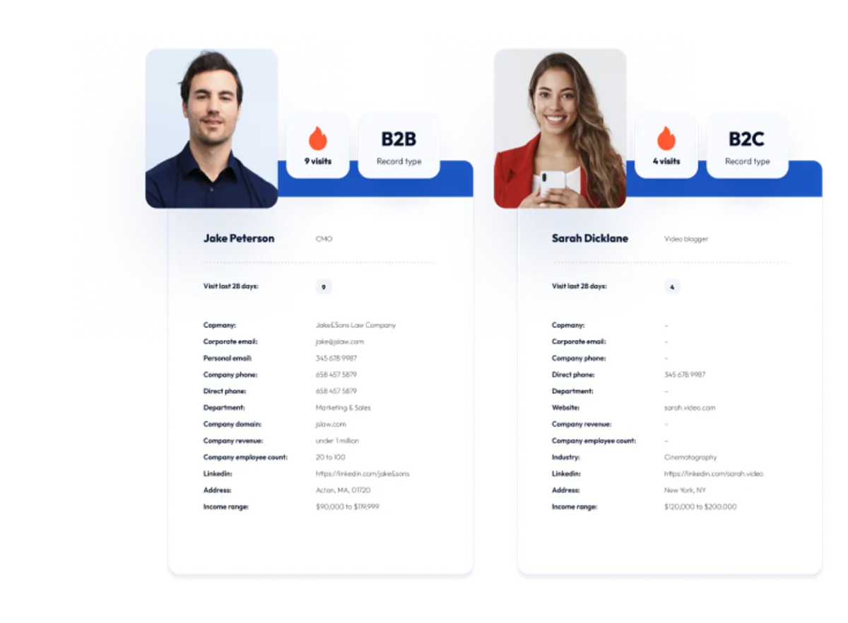 Identify hidden sales opportunities with Identifyly, target B2C & B2B customers, and improve engagement strategy. Our platform makes it easier to connect with your prospects and turn them into loyal customers.