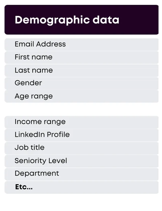 Website visitors are identified and matched using an identity resolution graph from a leading US data cooperative to provide demographic and firmographic data.