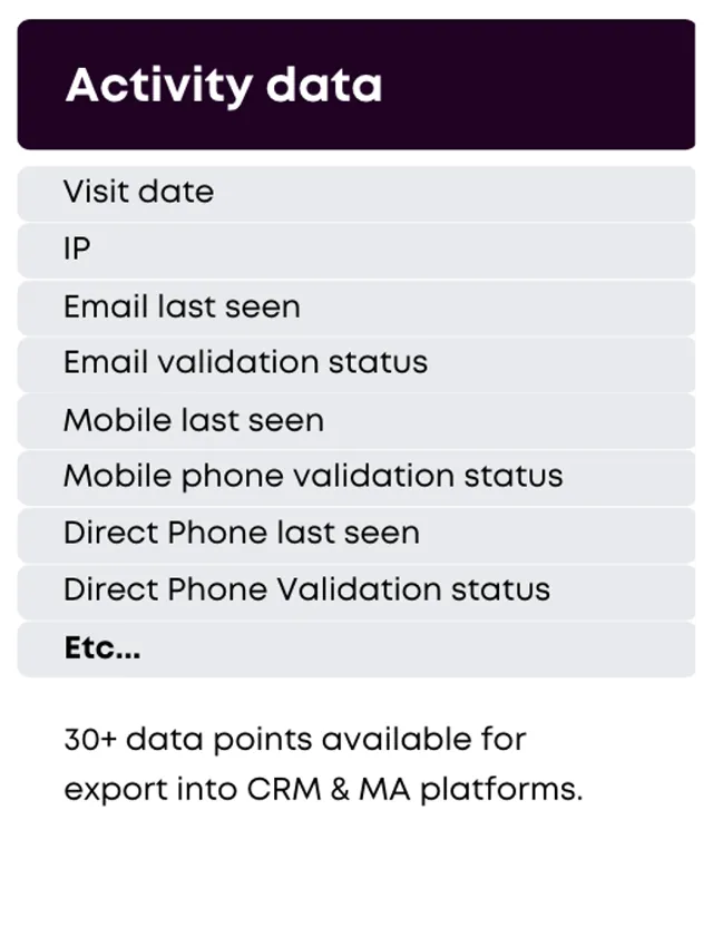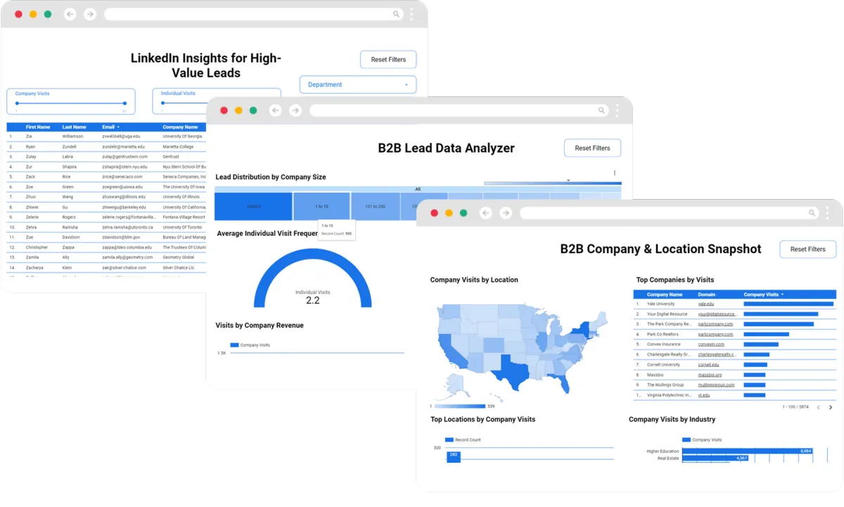The key to successful sales and marketing is having a deep understanding of your potential buyers. That is why our powerful data analysis platform combines your identified site visits data and email interactions data to help you find your most engaged list of prospects.